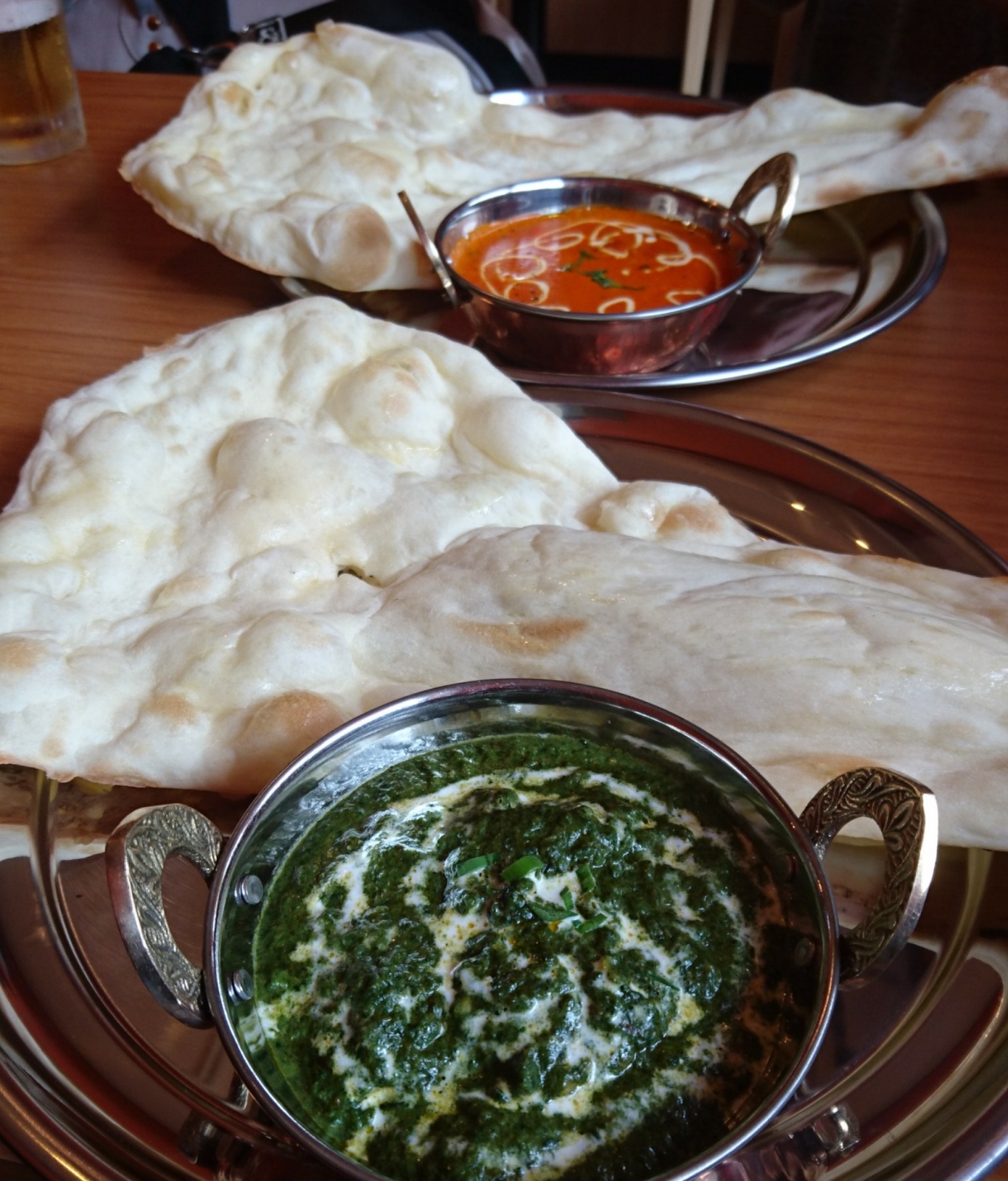 私は ほうれん草チキン、友達はバターチキン。